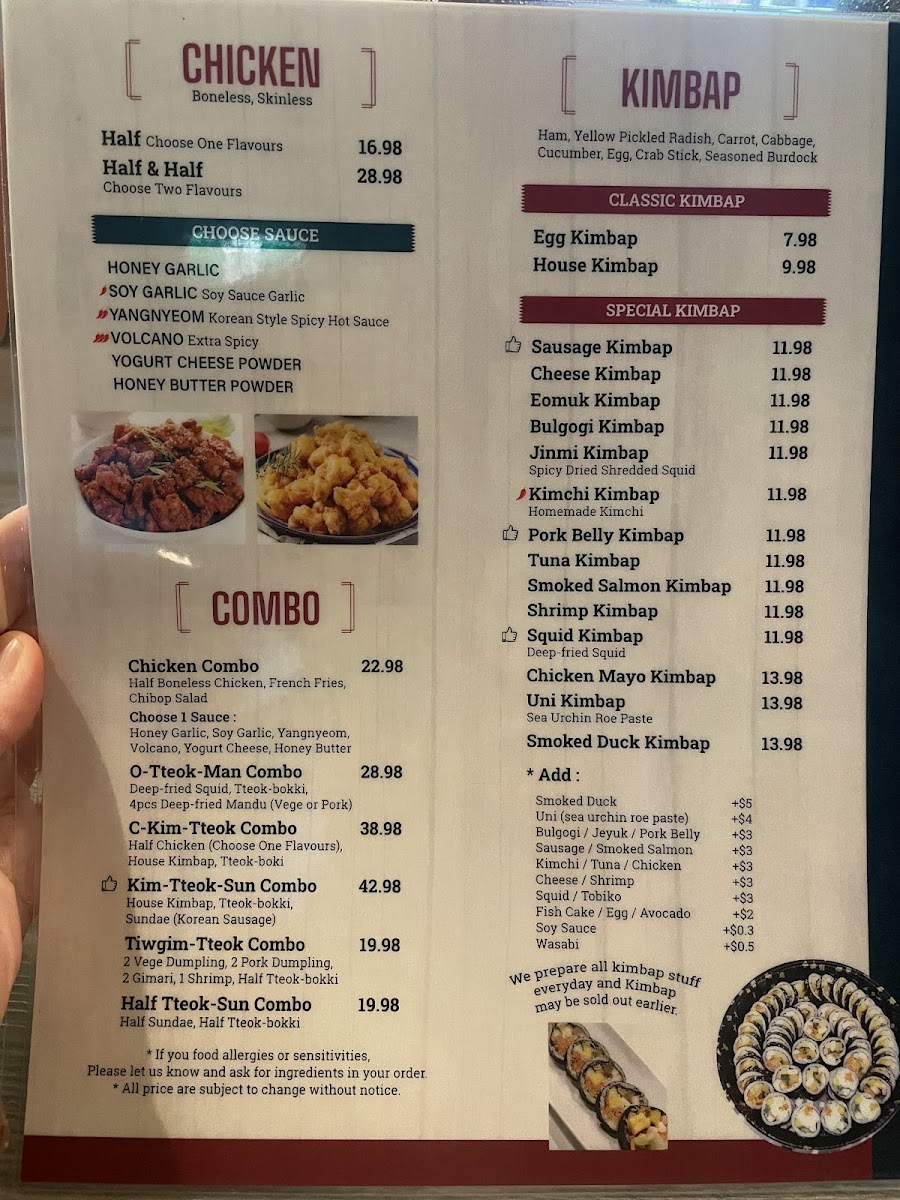 This place is a hidden gem! Food is super fresh, delicious, and reasonably priced. Their staff are really friendly and attentive (especially for a sat night)!! We got the C-Kim-Tteok combo and were pleasantly surprised at all the items. Will dine here again!